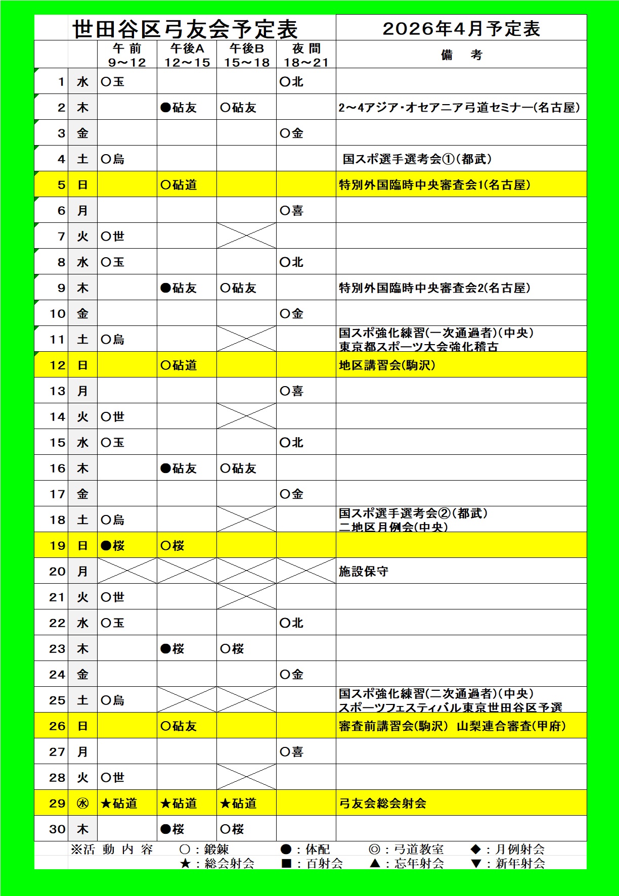 2026年4月予定表