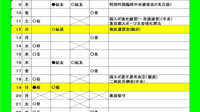 2026年2月駒沢予定表